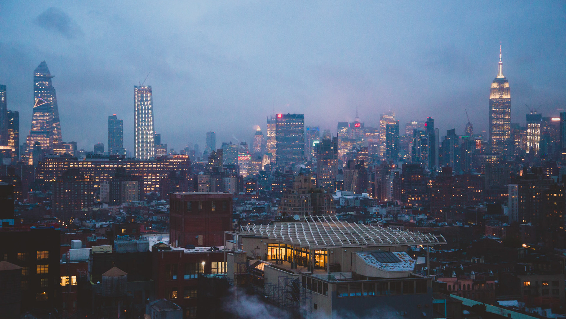 Waiting for the subway train on the elevated subway platform in Williamsburg, Brooklyn.